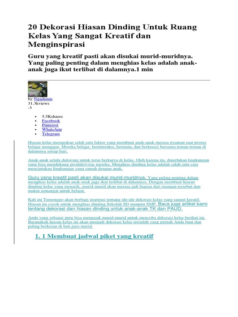 15 Hiasan Dinding Kelas Sd Yang Menarik Dan Kreatif Infokemdikbud