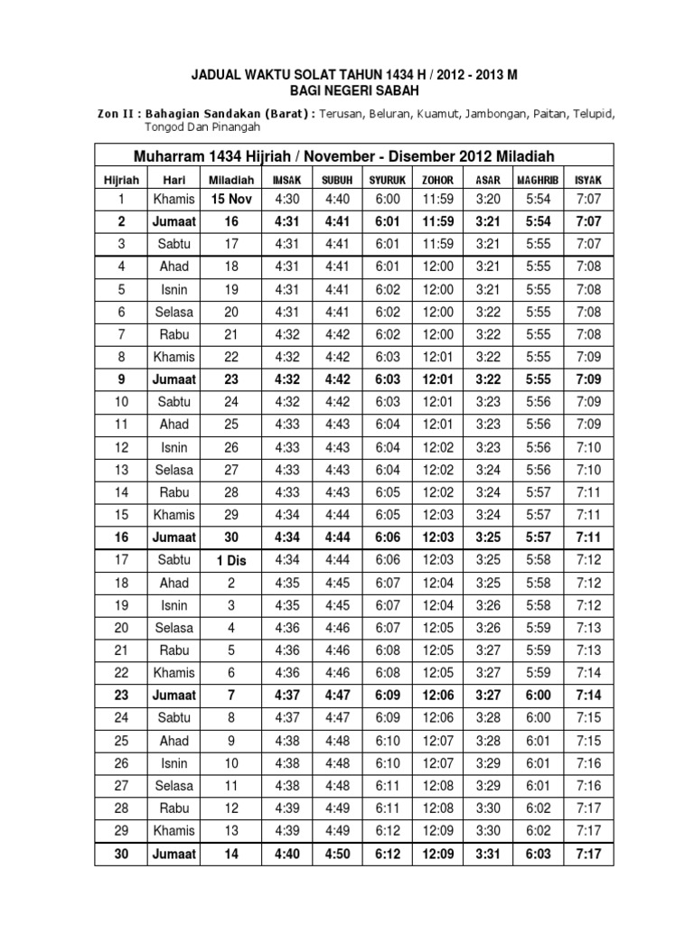 Xls Jadual Waktu Solat 1437 Seluruh Sabah Pusat Islam Ums Academia Edu