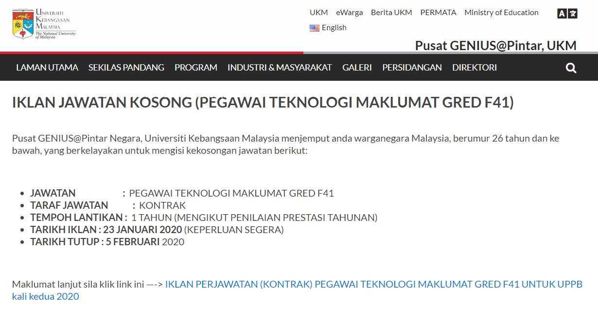 Jawatan Kosong Universiti Kebangsaan Malaysia Pegawai Teknologi Maklumat Jawatan Kosong Kerajaan Terkini 2020