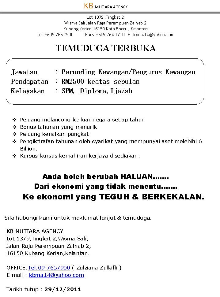 Jmc Kota Bharu Jawatan Kosong Di Kb Mutiara Agency