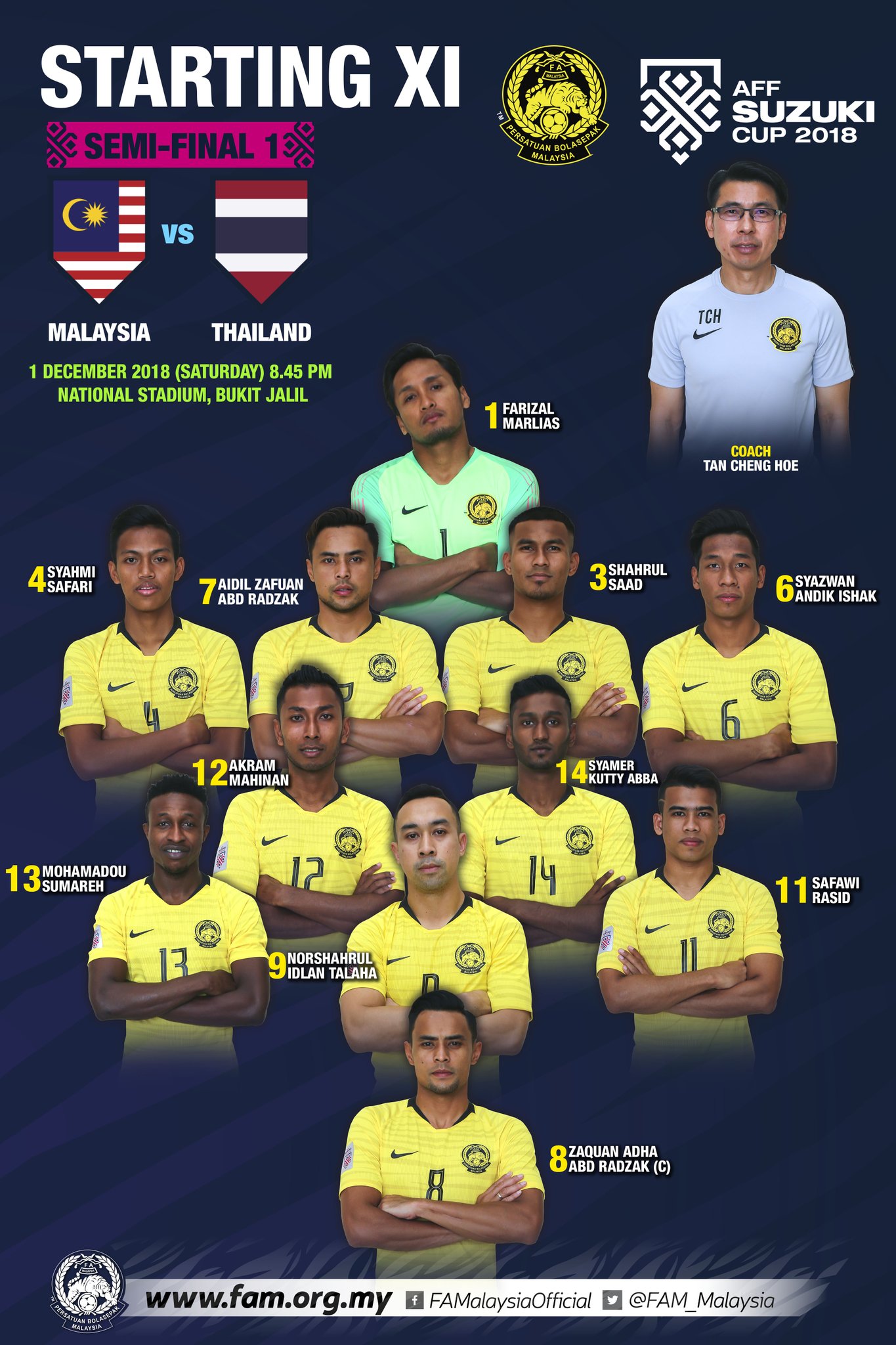 Fa Malaysia On Twitter 2018 Aff Suzuki Cup Semi Final 1 Saturday 1 December 2018 Starting Xi Malaysia Vs Thailand National Stadium Bukit Jalil 8 45 Pm Full Players List At Https T Co 2xjd42y55w
