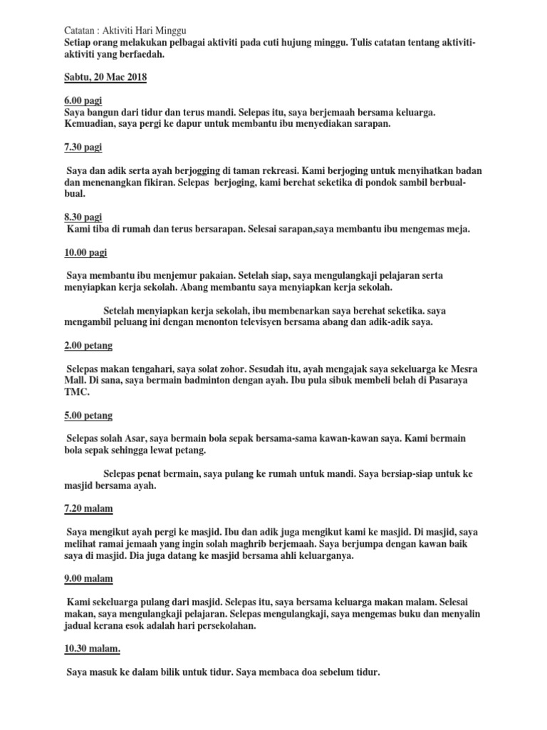Sjkc Isi Karangan Untuk Murid Galus Penulisan Aktiviti Hujung Minggu