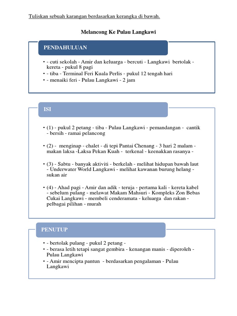 Karangan Bercuti Ke Pulau Langkawi Kbsr Bm Tahun 3