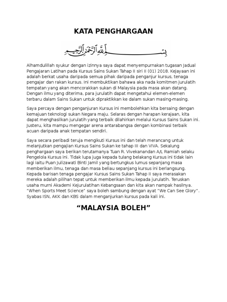 Contoh Ayat Penghargaan