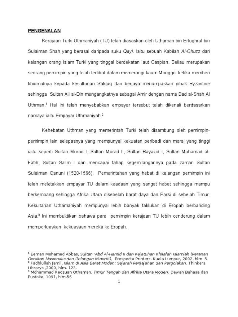 Doc Kesan Kejatuhan Khilafah Uthmaniyyah Terhadap Umat Islam Ainum Solehah Academia Edu
