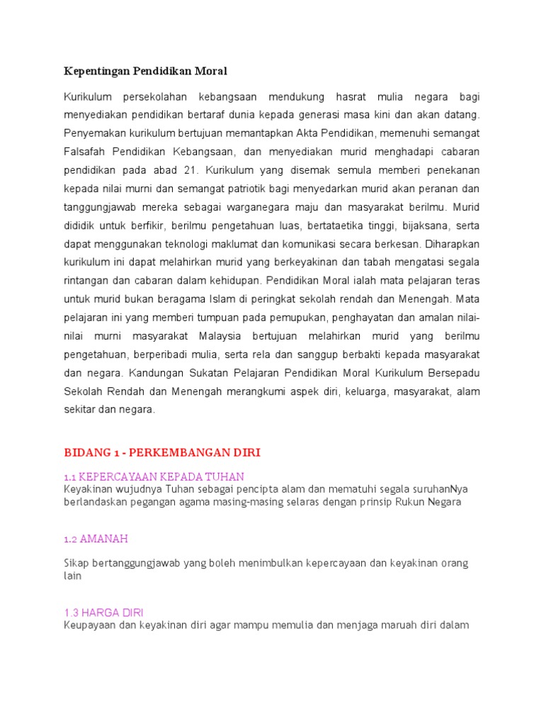 Kepentingan Menjaga Maruah Diri Pendidikan Moral