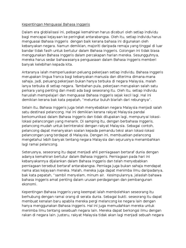 Contoh Karangan Kepentingan Menguasai Bahasa Asing Seperti Bahasa Inggeris