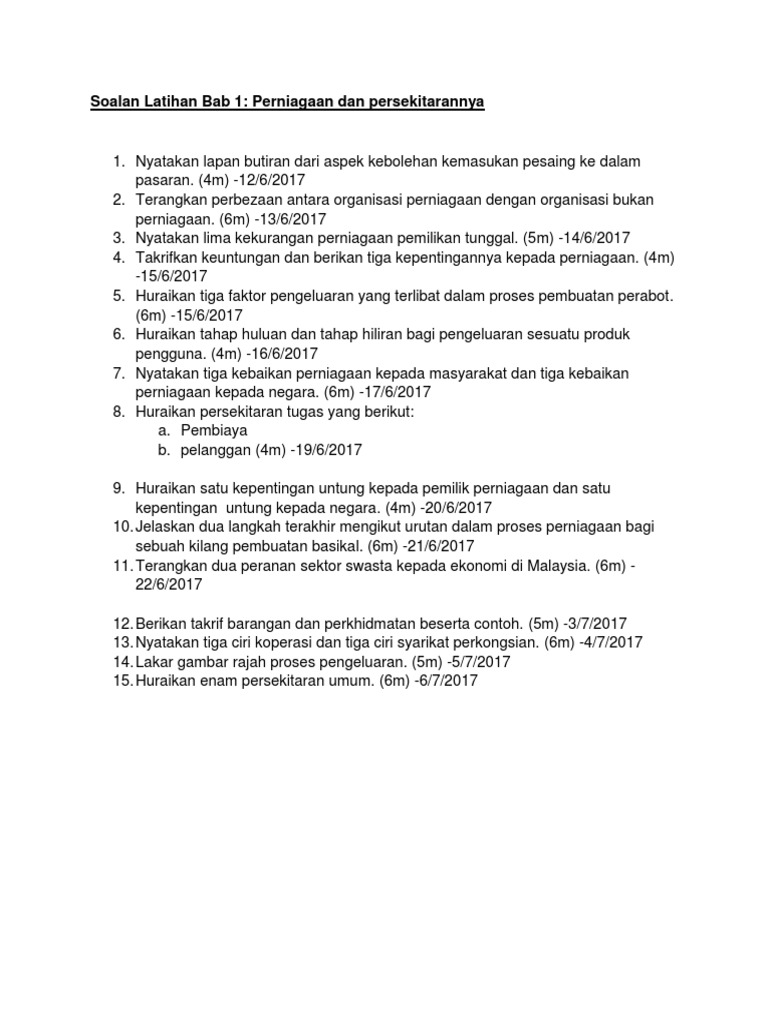 Cikgu Karthik S Blog Pengajian Perniagaan Penggal 1 Perniagaan Dan Persekitaran Bahagian 1 Nota Dan Praktis