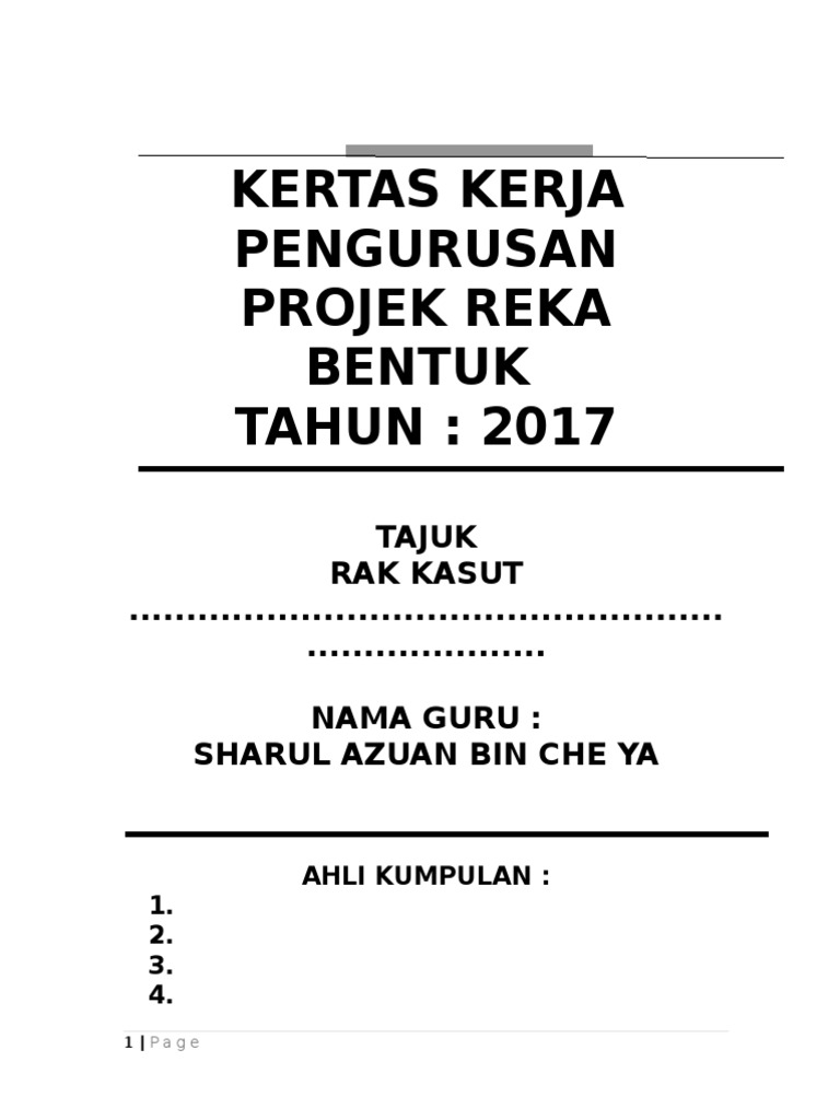 Kertas Kerja Pengurusan Projek Reka Bentuk Tahun 2017