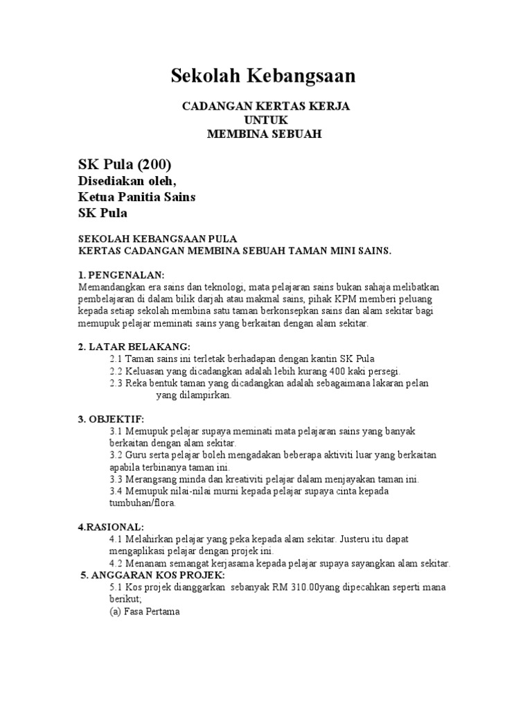 Kertas Kerja Projek Sains
