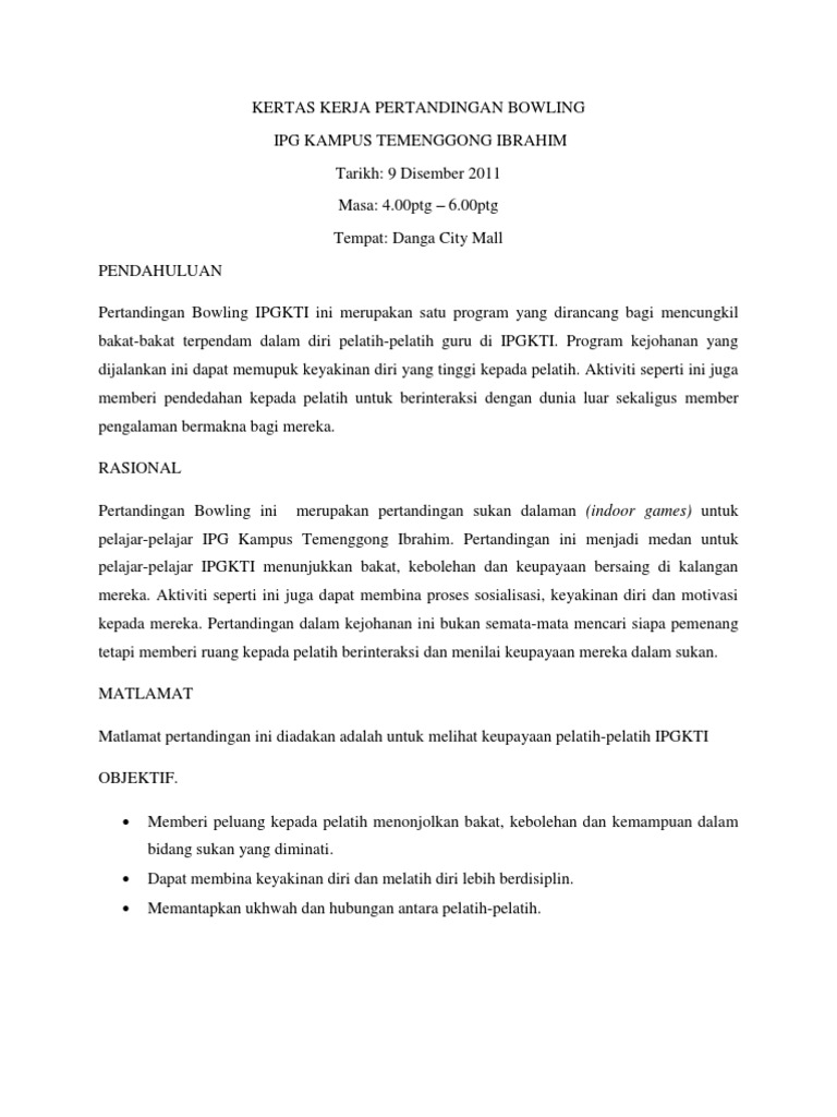Kertas Cadangan Kejohanan Bowling Shahian By Hafifi Baik Issuu