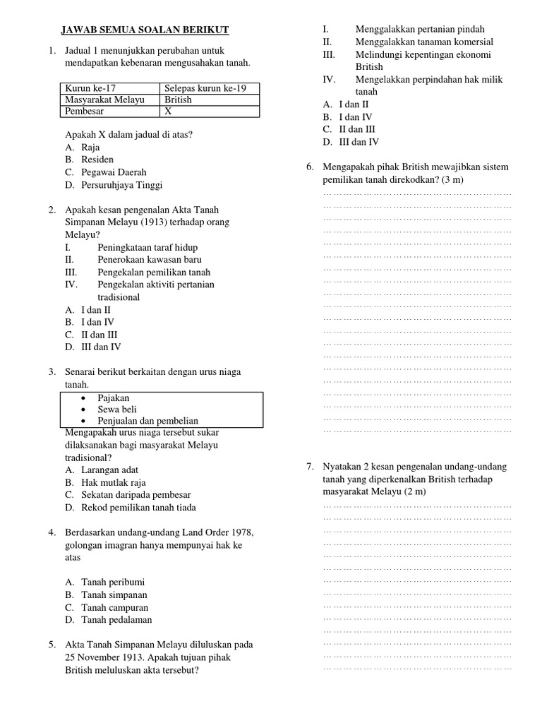 Belajar Sejarah Spm Akta Tanah Simpanan Melayu