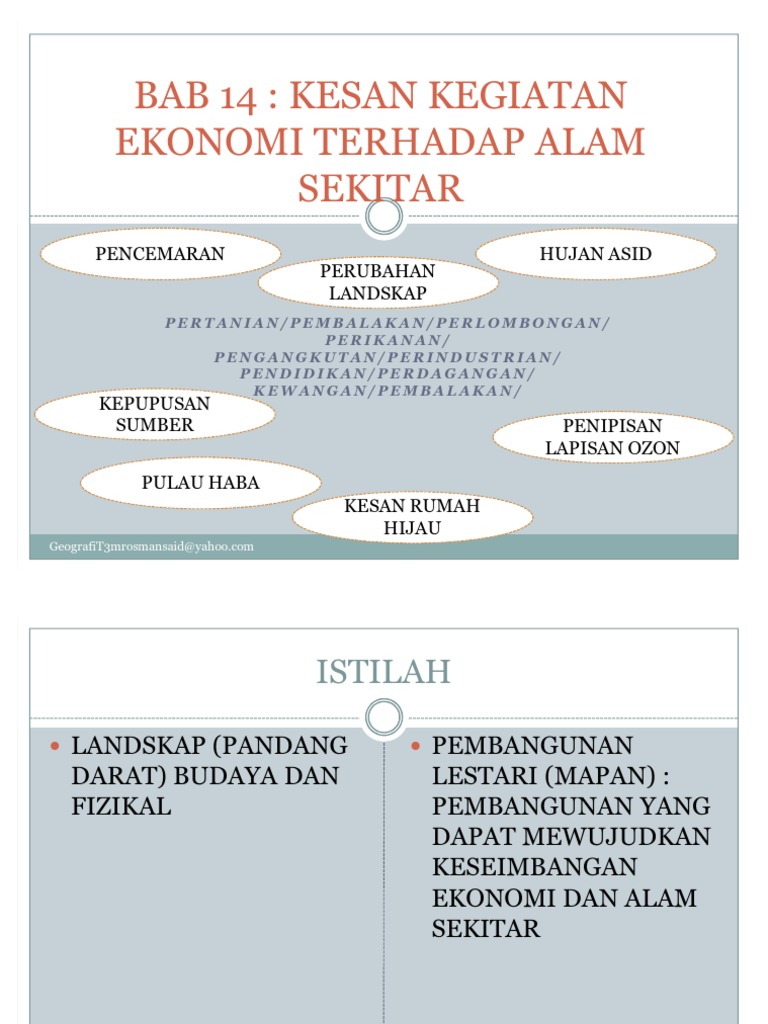 Kesan kedinamikan pembangunan fizikal terhadap sumber warisan dan alam sekitar. Kesan aktiviti pertanian ke atas sosio ekonomi perubahan landskap budaya wujud petempatan kelompok perubahan jenis tanaman pertambahan penduduk kemasukan buruh asing 8. Antara kesan kesan buruk ialah.