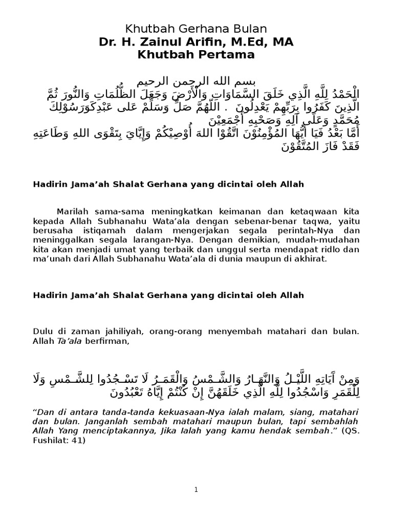 Khutbah Mukhlis Denros 230 Khutbah Gerhana Bulan