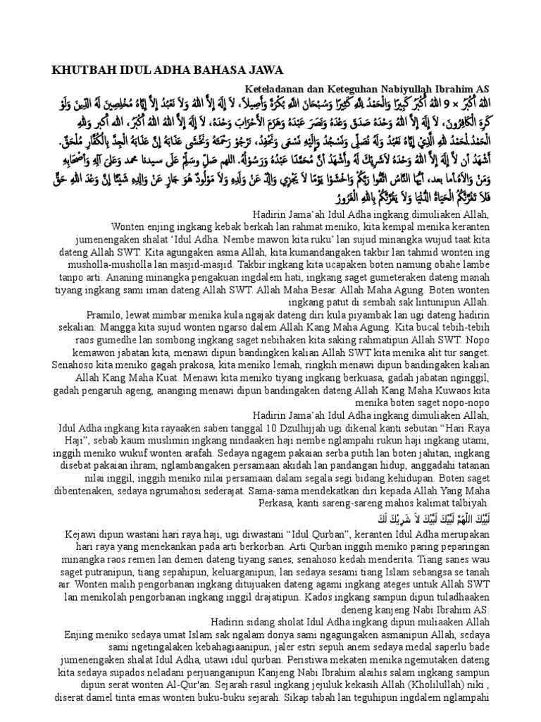 Khutbah Idul Adha Bahasa Jawa Keteladanan Dan Keteguhan Nabiyullah Ibrahim As
